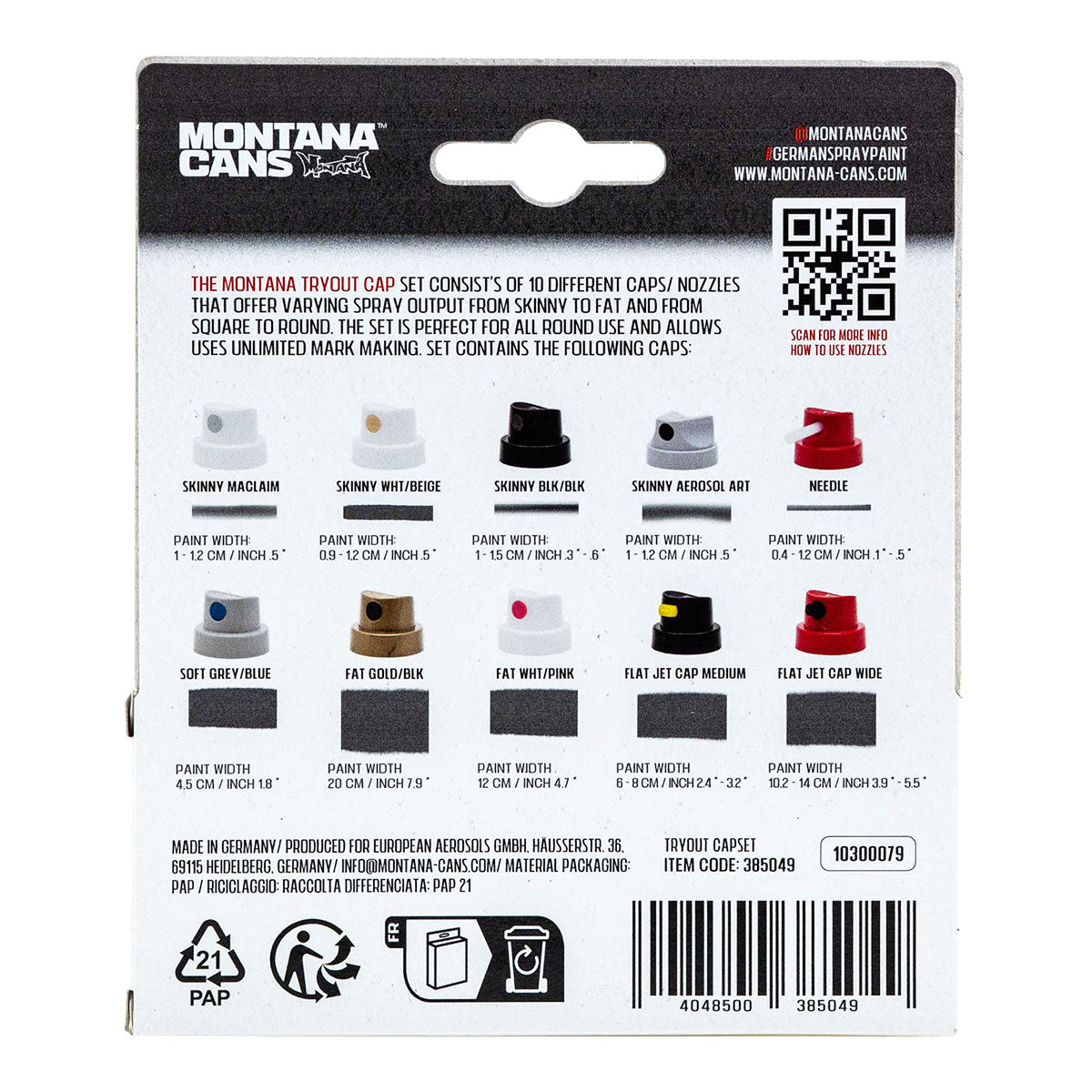 The Montana TRYOUT Cap Set is a fantastic way to explore a variety of spray patterns. With 10 different nozzles, you’ll have everything from ultra-skinny to fat, round to square, to try out. These caps are perfect for graffiti artists, DIYers, and crafters alike, giving you the flexibility to experiment with different spray outputs.