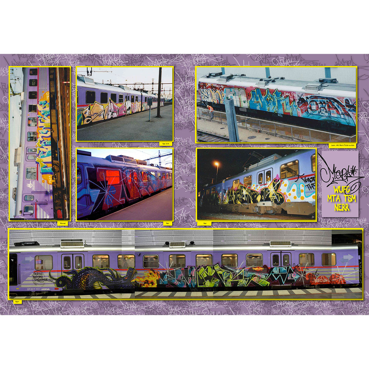 Zine about Pågatåg, or rather about all graffiti. Not really "about" but more pictures of it. Close to 660 square meters of vandalism in total. Blood, sweat, tears, and above all, lacquer-based surface treatment have been applied to this powder-coated motor car between 1995 and 2015, without anyone really asking for it. Art with a value that lies to the left of zero, by young people but above all middle-aged men. A fraction, but still quite a lot, is reproduced in this zine.