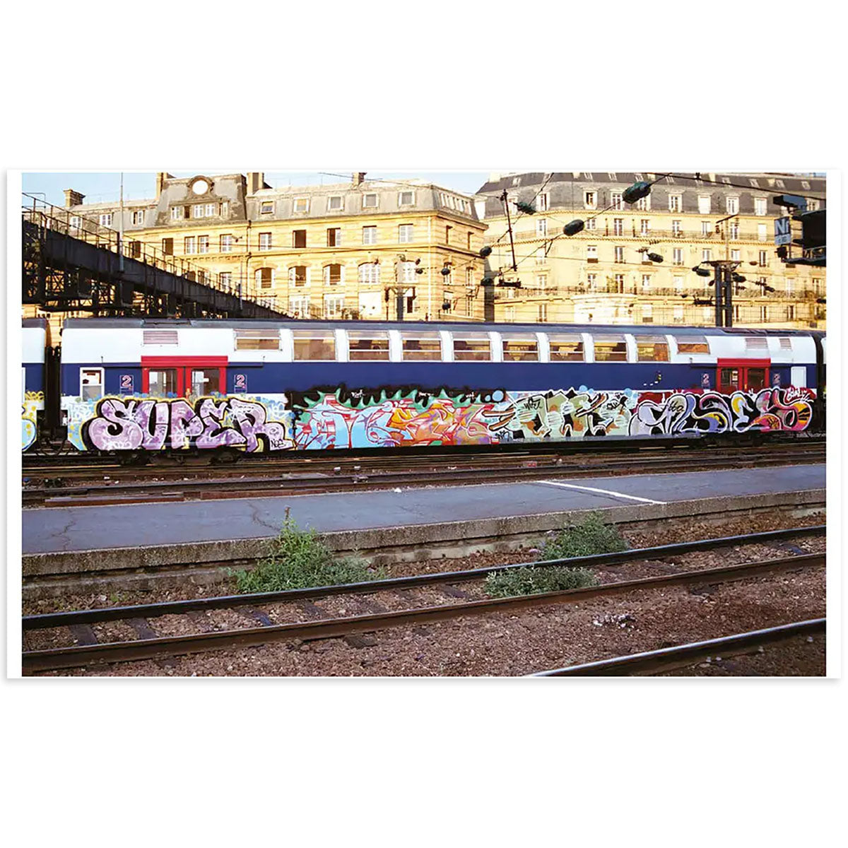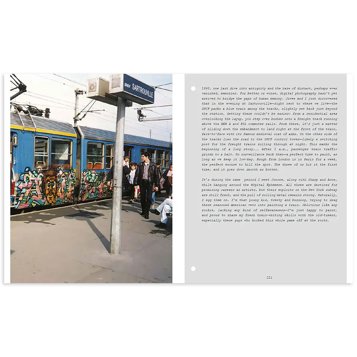 This is personal graffiti history from one of Europe's most notorious trainwriters, documenting friendships and sessions that shaped the scene. Text in French and English. 22 x 27.7 cm embossed linen hardcover. December 2025 release from SABOTAGE Editions. More than just a photo book - it's about honoring the people behind the paint.