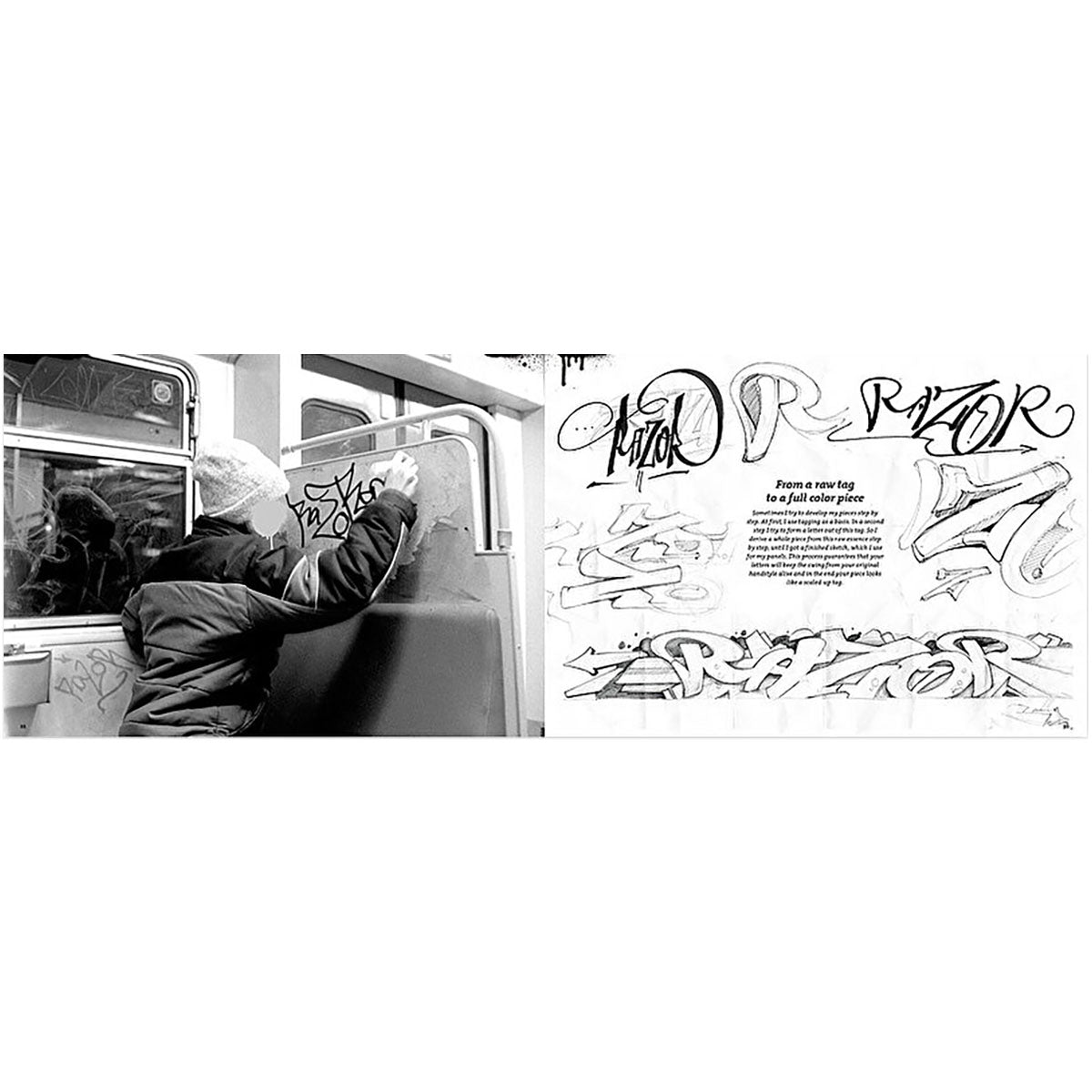 RAZOR – COLORS ON STEEL is structured like a personal blackbook, offering an intimate look into the mind of an artist who continues to redefine the possibilities of train graffiti.