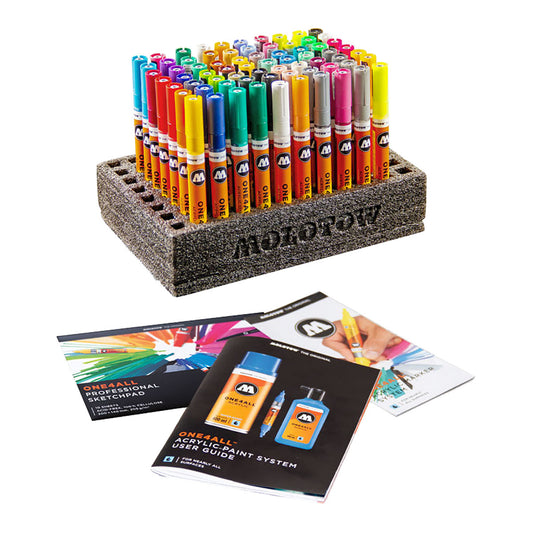 Tyska Molotow står för innovation och har sedan mitten på 90-talet producerat både sprayfärg och markers. Molotow förstod tidigt att graffitimålare inte enbart målar med sprayfärg och har idag ett stort utbud av pennor för alla olika ändamål. Molotow ONE4ALL-serien är deras absolut populäraste produkt där du kan bland massa olika tekniker, allt från airbrush och pennor till spray och pensel.